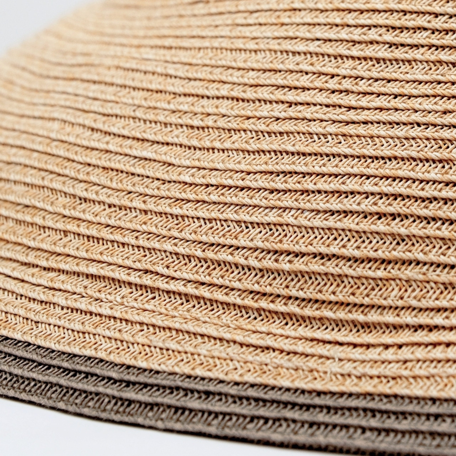 つば先には異なる色のペーパーブレードを上品に組み上げ、軽くて扱いやすい帽子です。