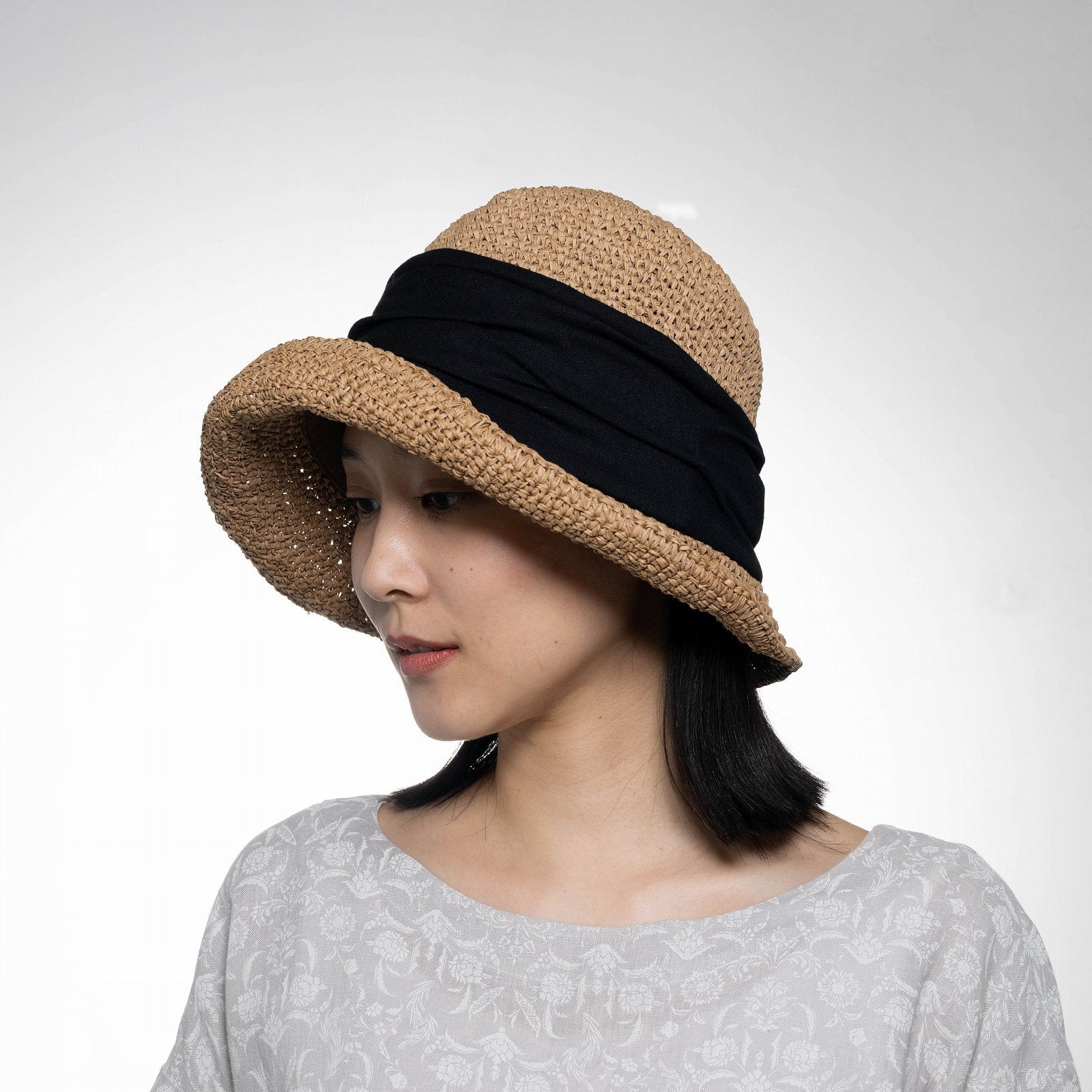 【2026春夏】手編みペーパーギャザー ブルトン|オフホワイト/グレイ/ブラウン/ライトブラウン Hand-Crocheted Paper Gathered Breton Hat