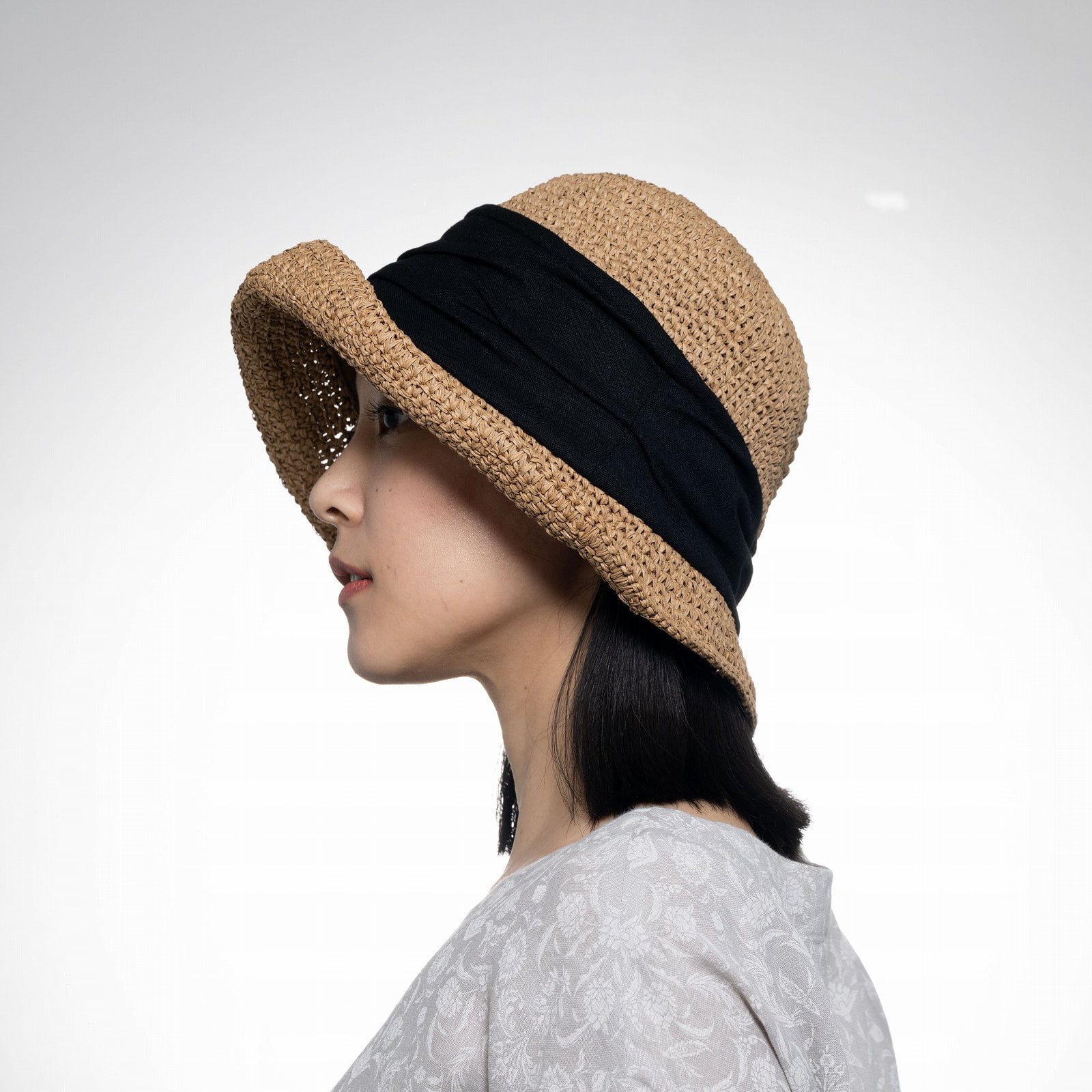 手編みのペーパーブレードの自然な風合いと、ほどよい広さのつばで日差しをやわらかくカバーします。軽くてたたんでもシワになりずらく、持ち運びにも便利。