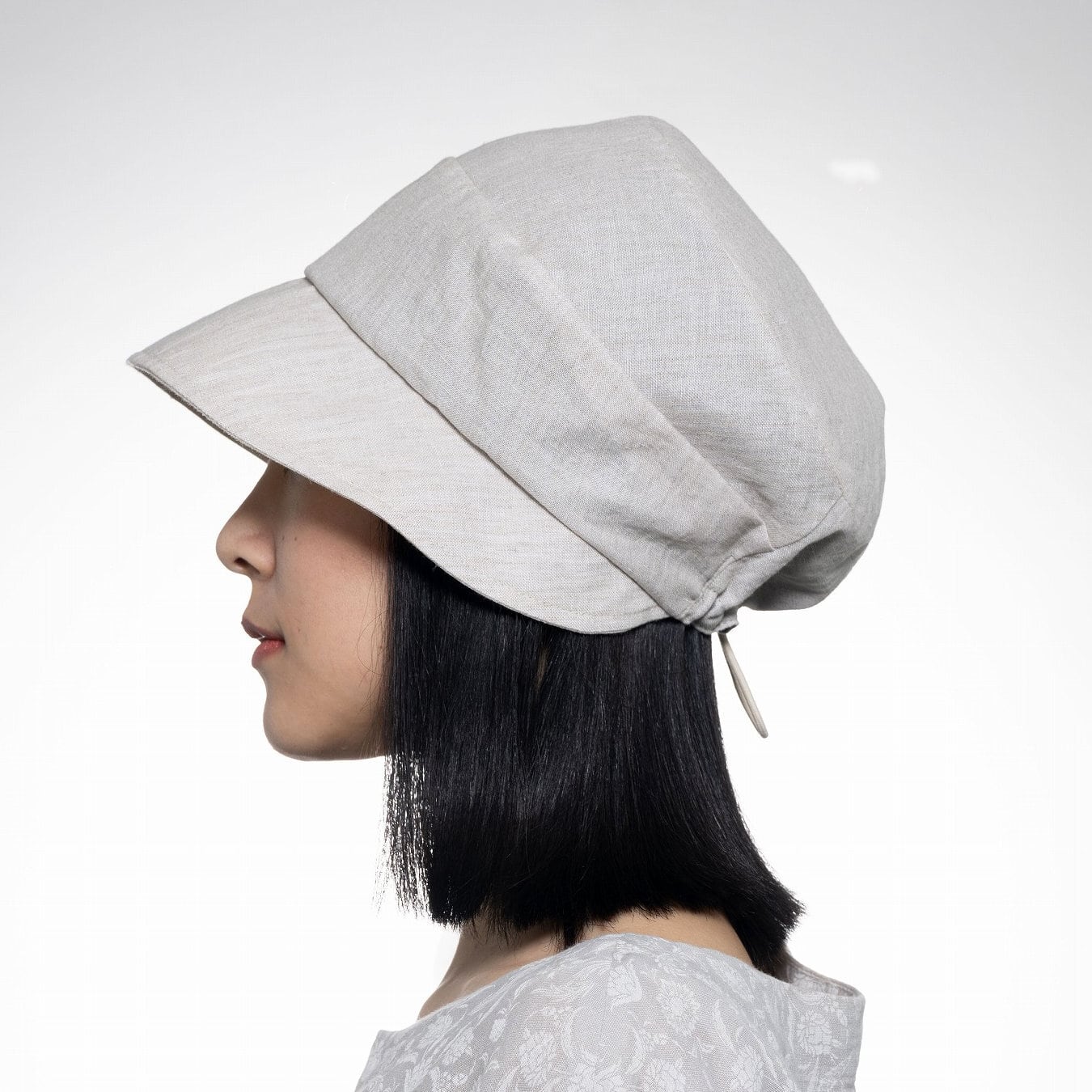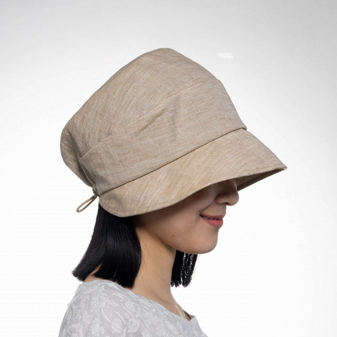 A lightweight cloche hat featuring a small brim for an easy, graceful look. Made from linen chambray, it offers a cool, airy feel and beautifully nuanced color tones that enhance its natural charm.