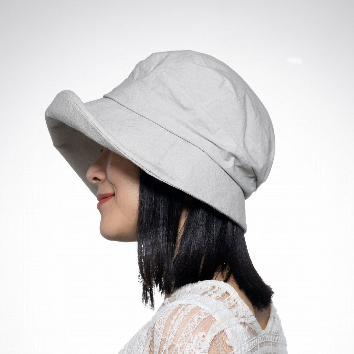 ふっくらつばがやさしく包むコットンギャザーハット