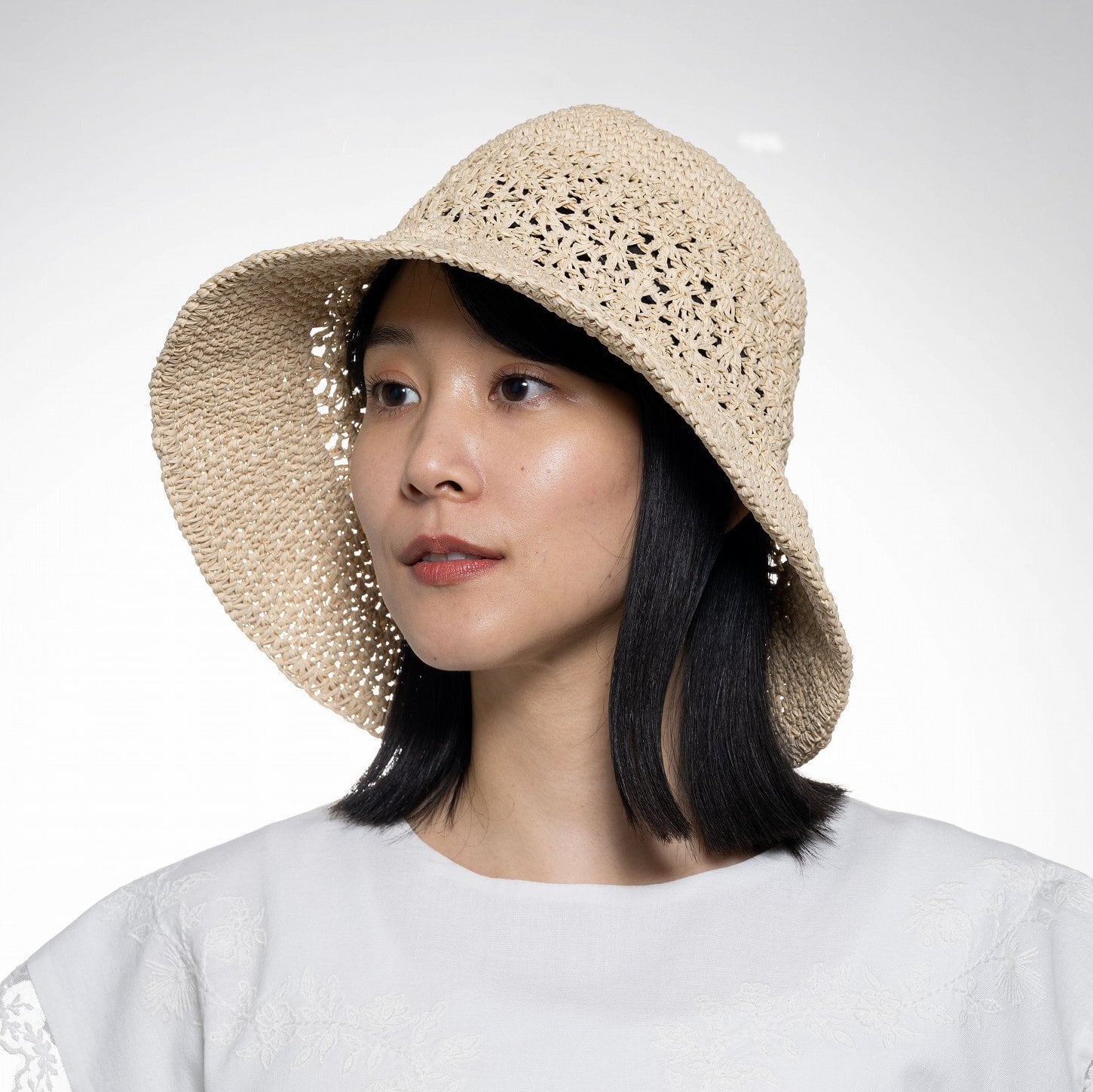 細編みの繊細な表情が美しい、軽やかなペーパーハット。
