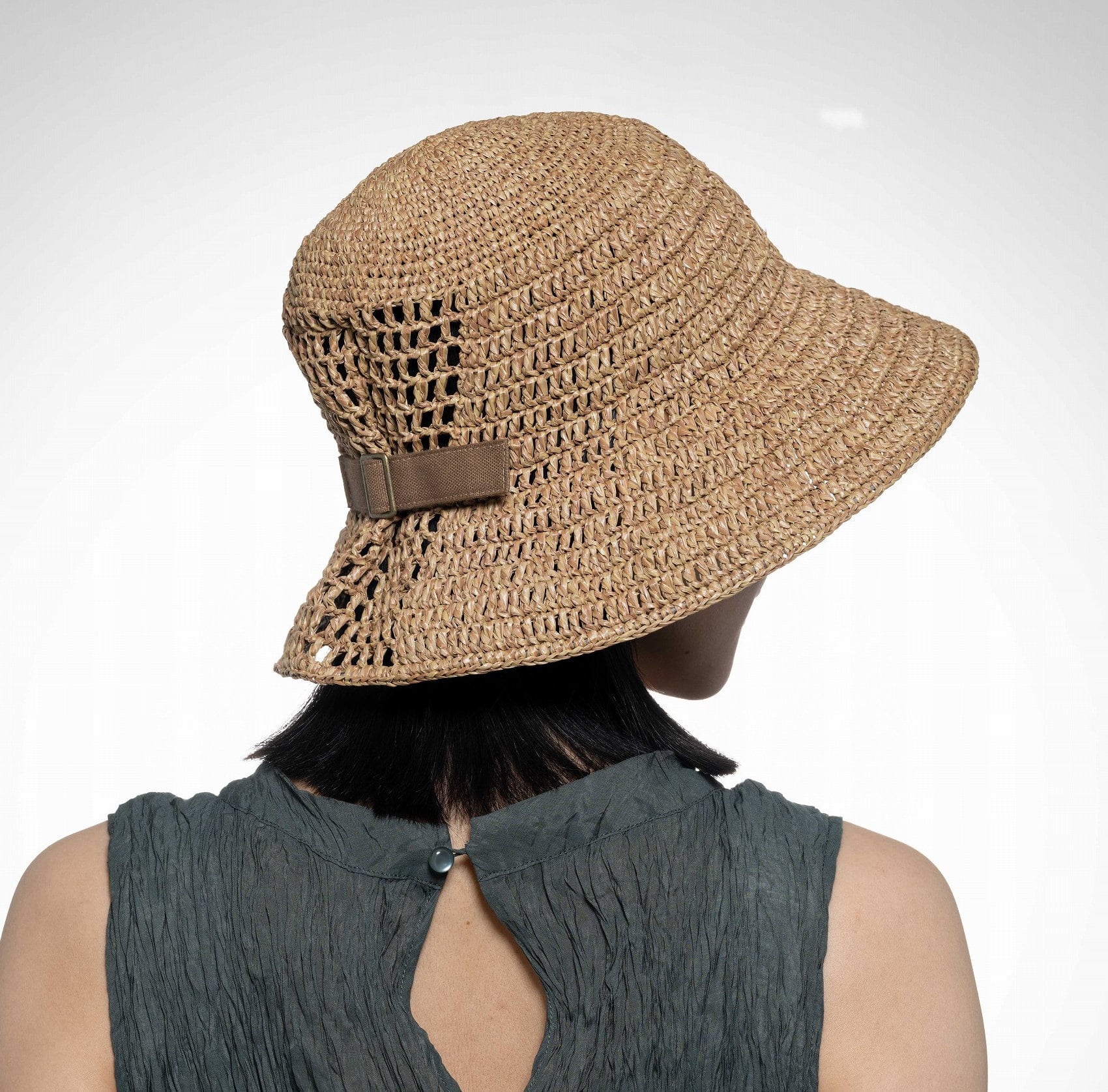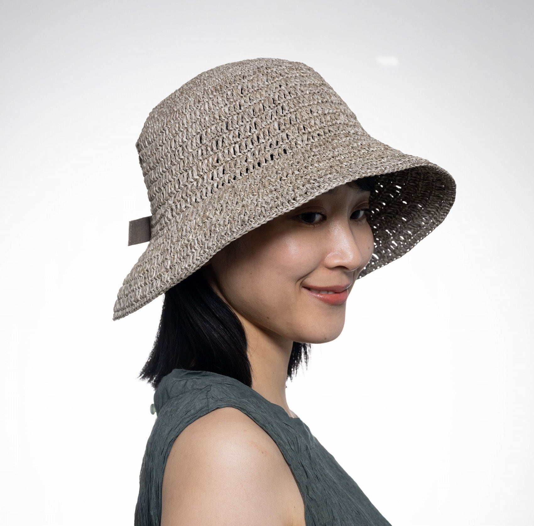 A new cloche hat featuring a breathable open-weave pattern and a refined belt detail. The adjustable belt ensures a comfortable fit, while its foldable design makes it easy to carry wherever you go.