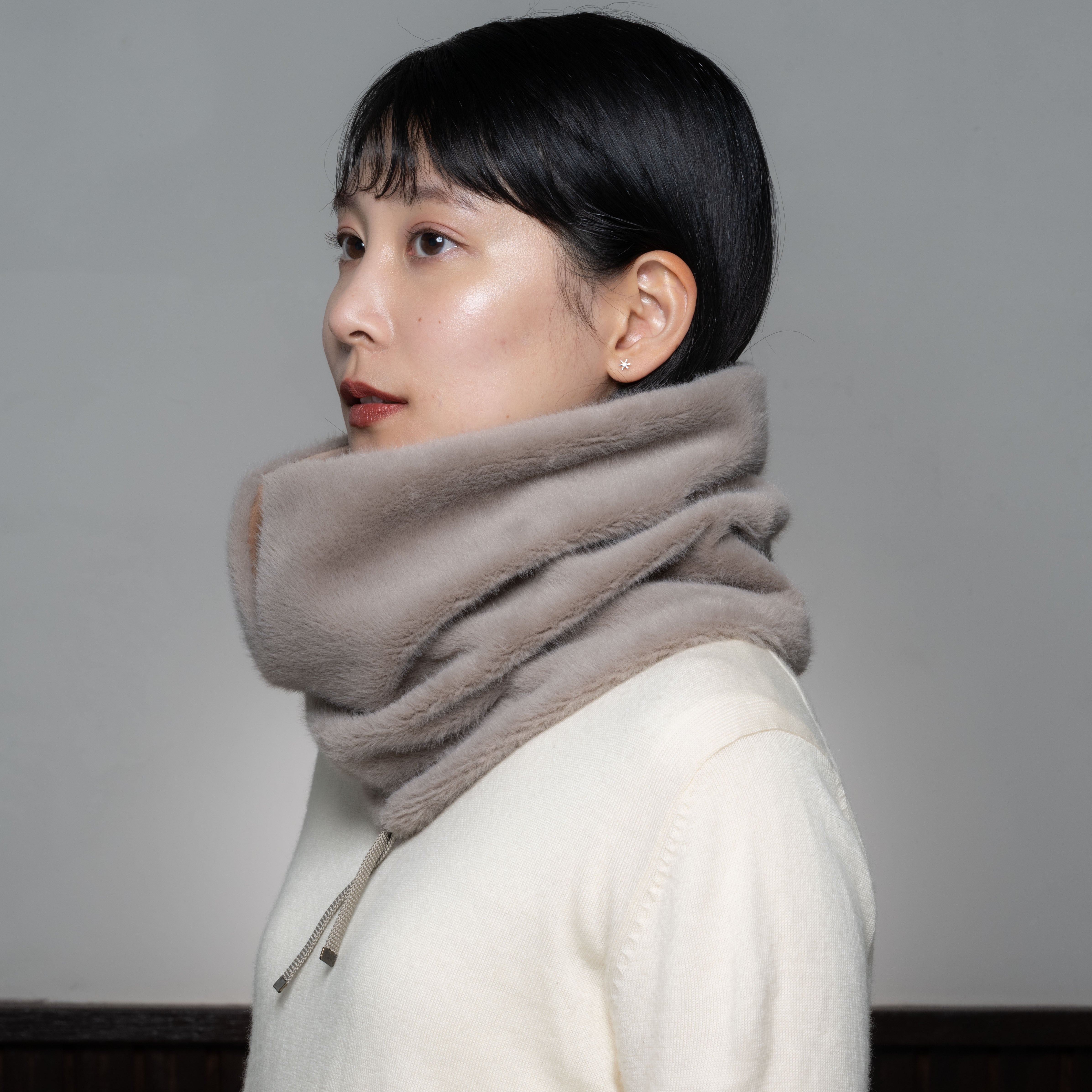 2025秋冬の新作 「NAMIKI chapelière」優しい肌触りのファーを使った、帽子としてもスヌードとしても使える便利アイテムです。アレンジ次第で何通りもの使い方が楽しめる、防寒にぴったりの商品です。